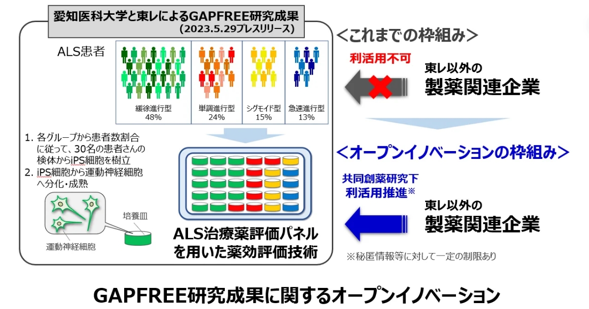 今後は、この技術を活用したALS治療薬の共同創薬研究を製薬関連企業と推進し、新薬候補の薬効評価を進める取り組みを展開します。東レと愛知医科大学は、連携をさらに拡大し、ALS治療薬の早期創出に向けて研究を継続していく方針です。
